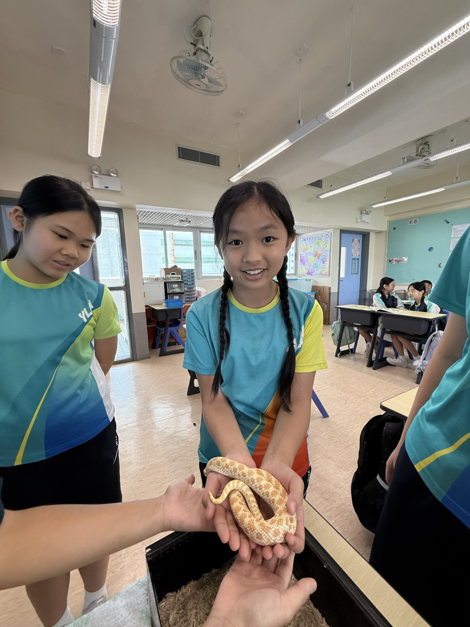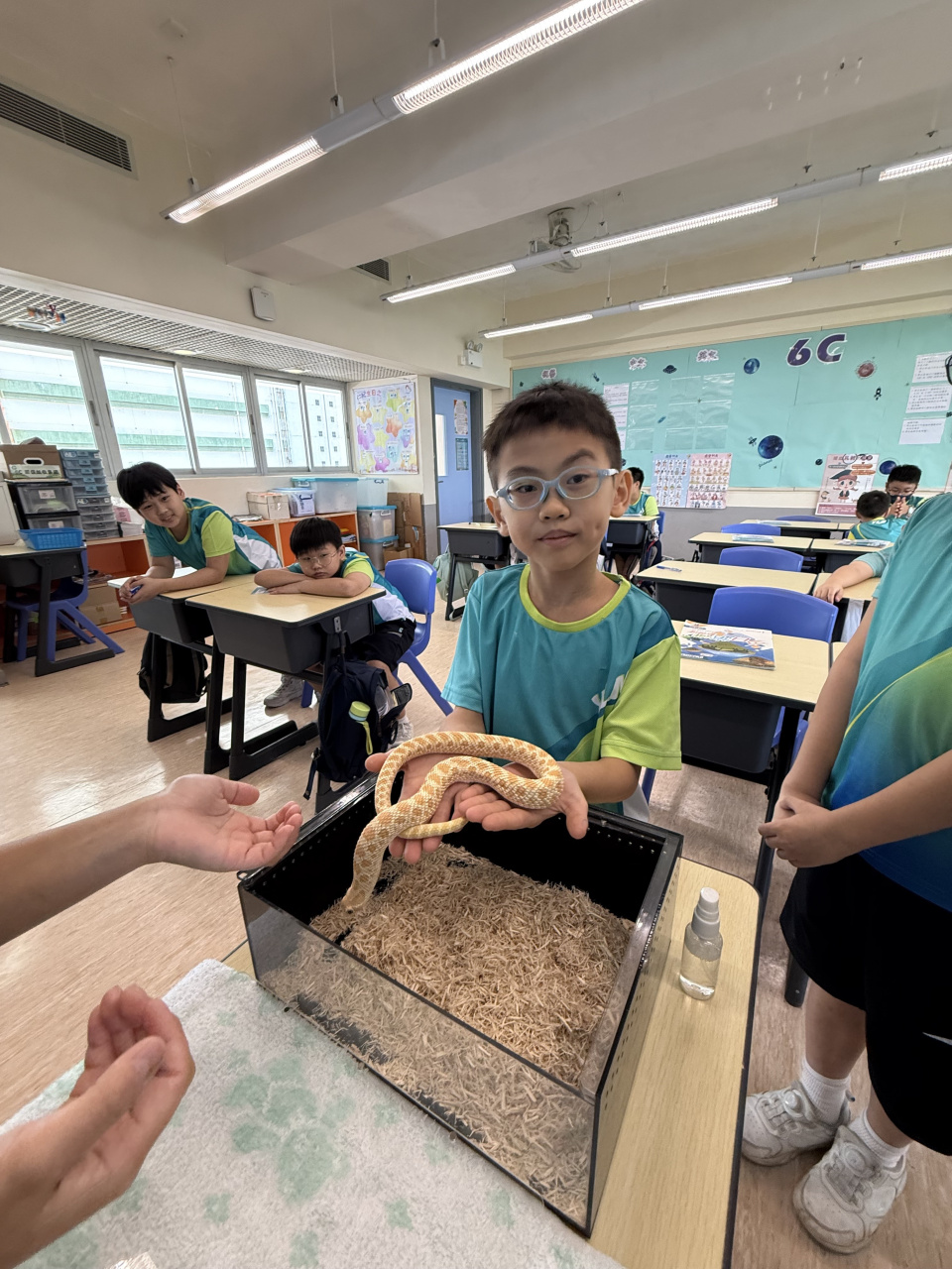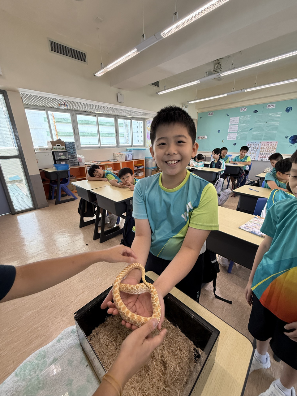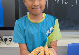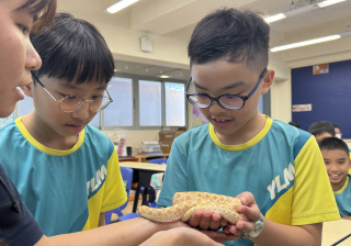同學表現雀躍,主動抱蛇觀察!透過分組研習本地生態,將科學知識結合愛護動物的價值觀,實踐真正的體驗式學習。