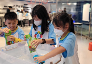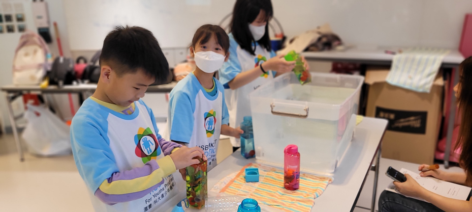 4A班同學馮名逸、洪韋晴及余詩楠代表學校參加「香港科技大學_水底機械人比賽」,當中三位同學需要運用科學原理如力學、水的特性、物件密度等去完成任務。